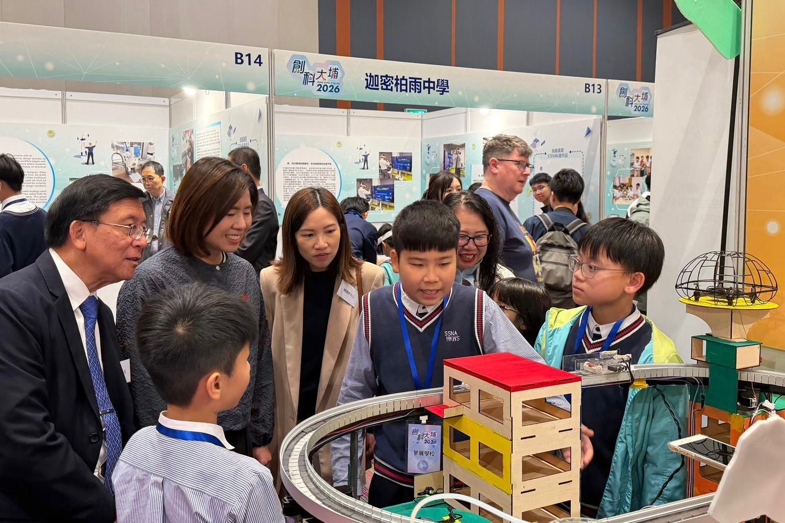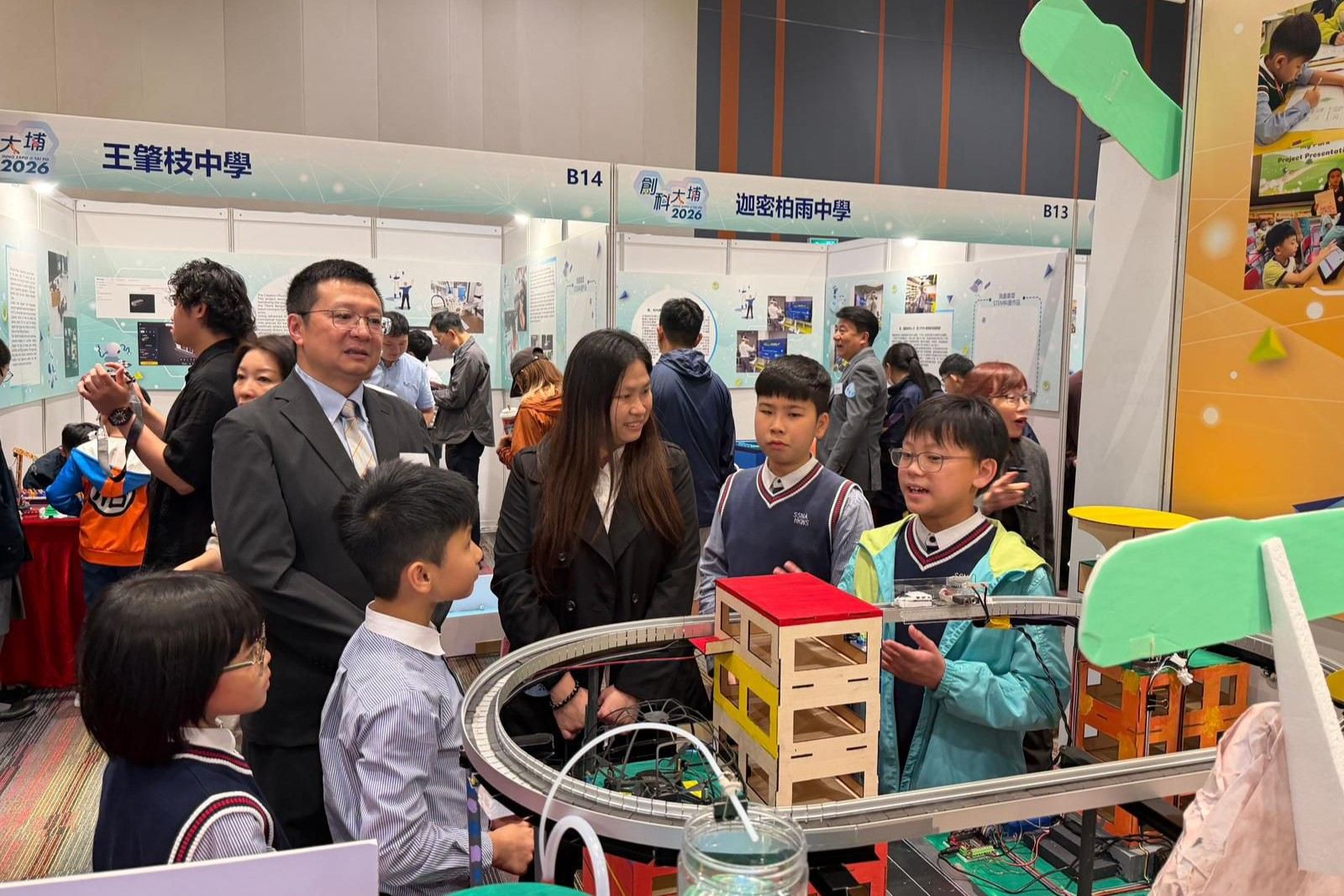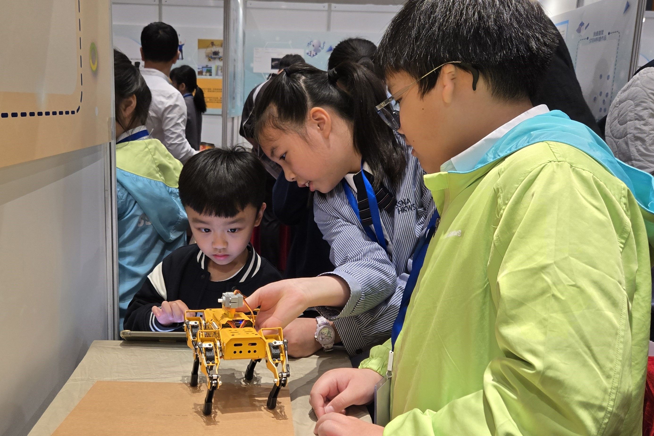 本校學生參展於科學園舉辦的「創科@大埔2026」展覽,以「智·愛大埔」為主題,展出「智·in未來大埔區」模型及「智·動大埔 AI Biker GO!」應用程式,並展示機械狗操作,充分展現STEAM科技與創意實力!