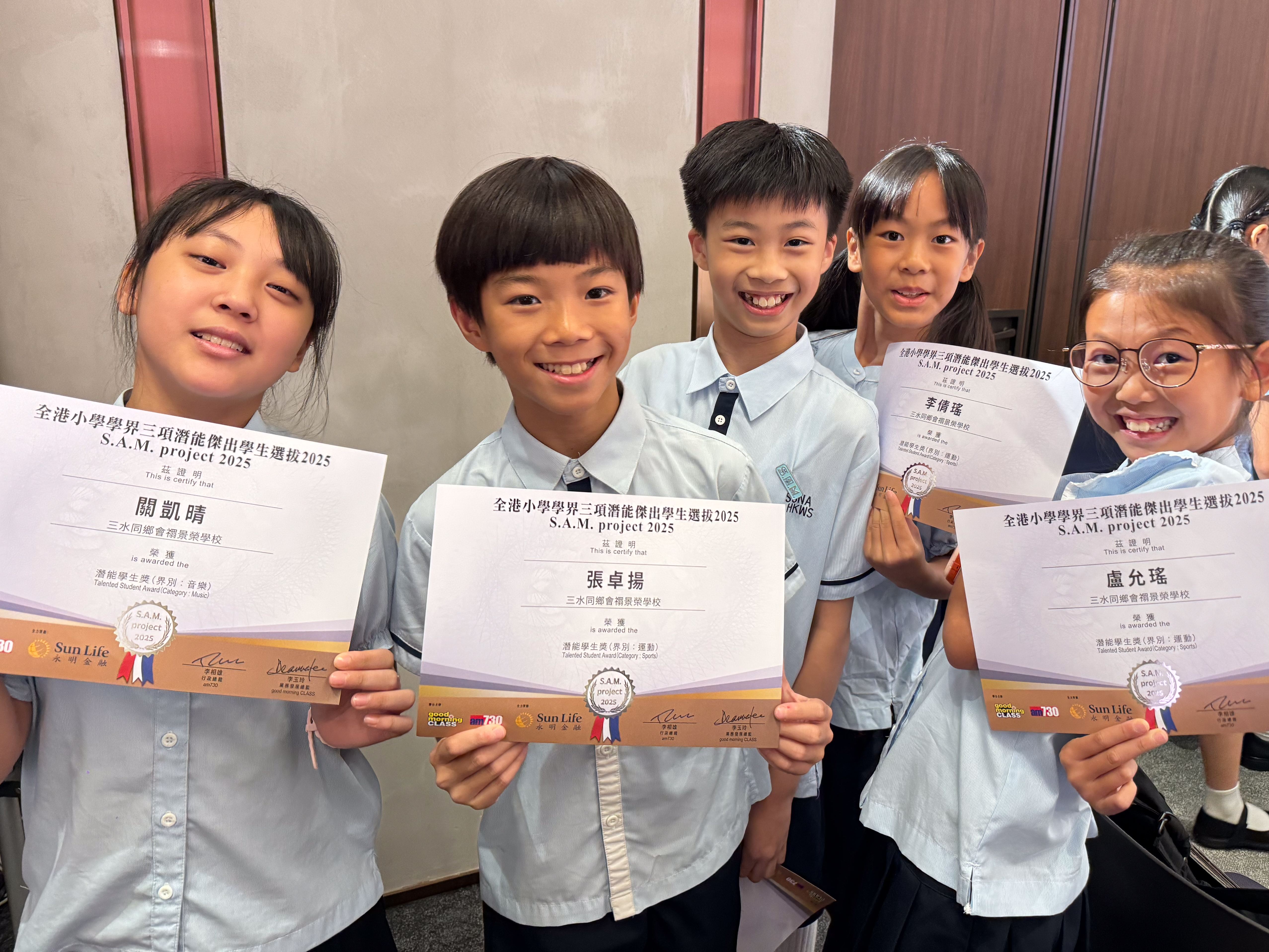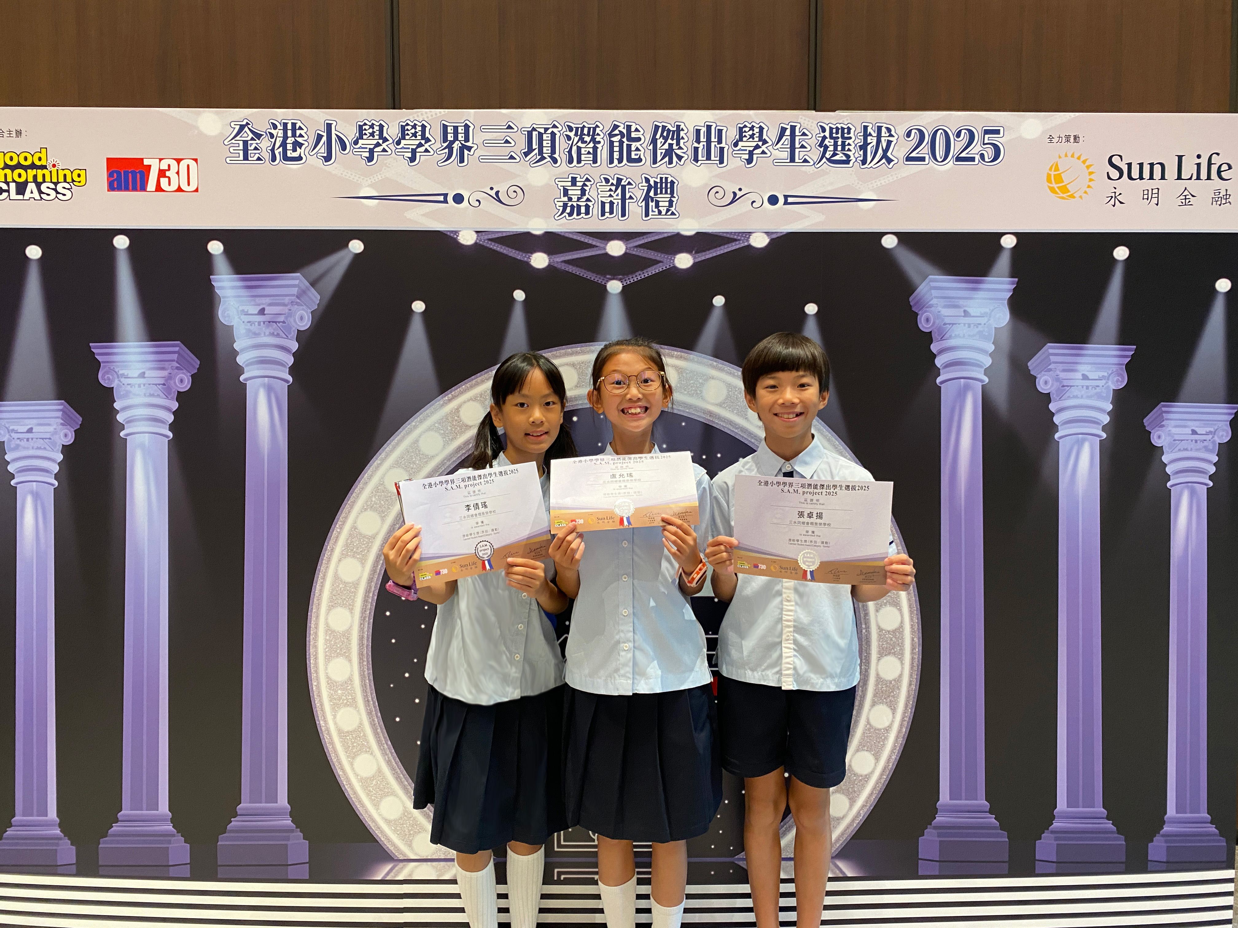 恭賀以下同學於「全港小學學界三項潛能傑出學生選拔2025(新界東)」中獲得潛能學生獎! 5B李倩瑤 5B張卓揚 5B盧允瑤 5B馬証軒 6B關凱晴