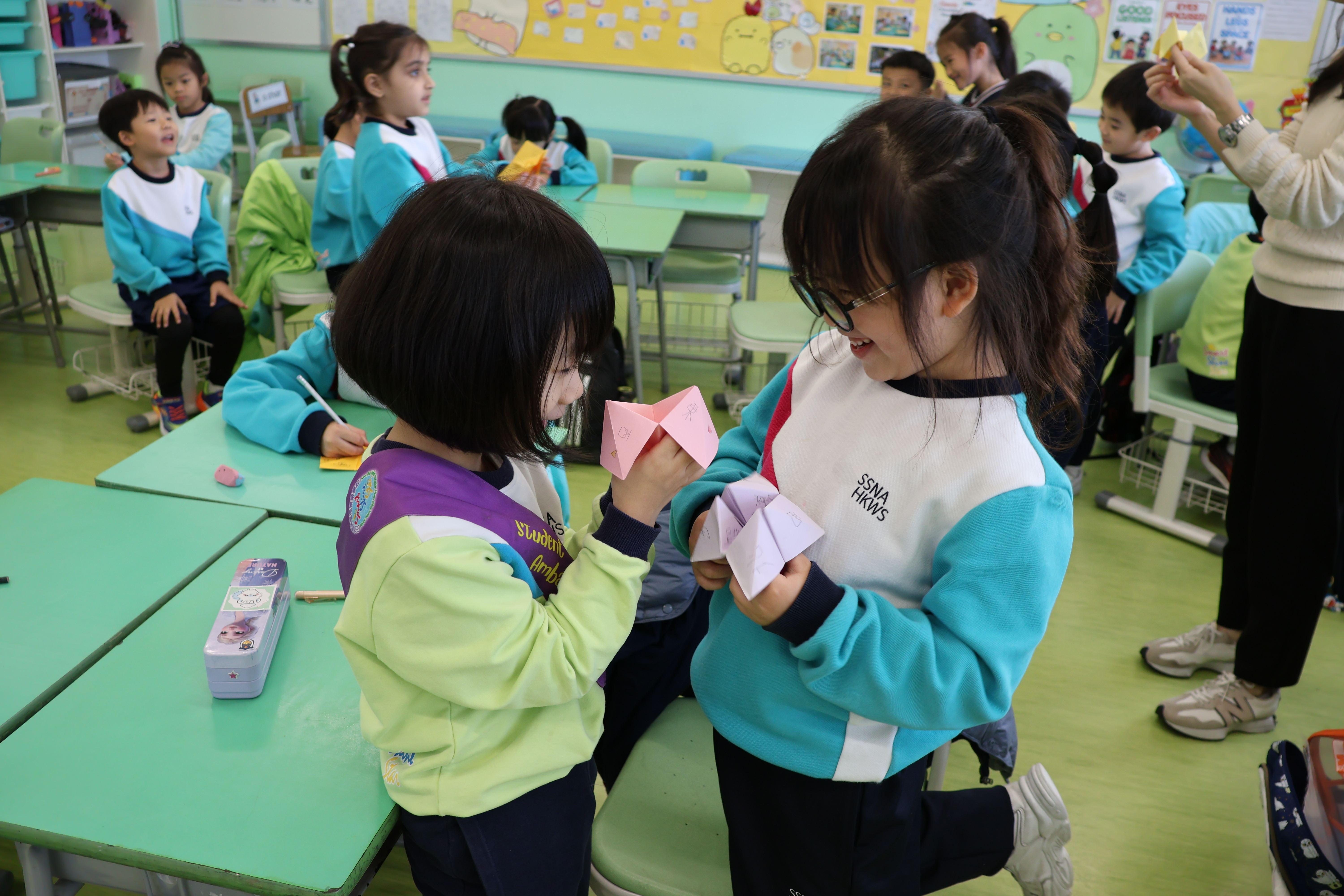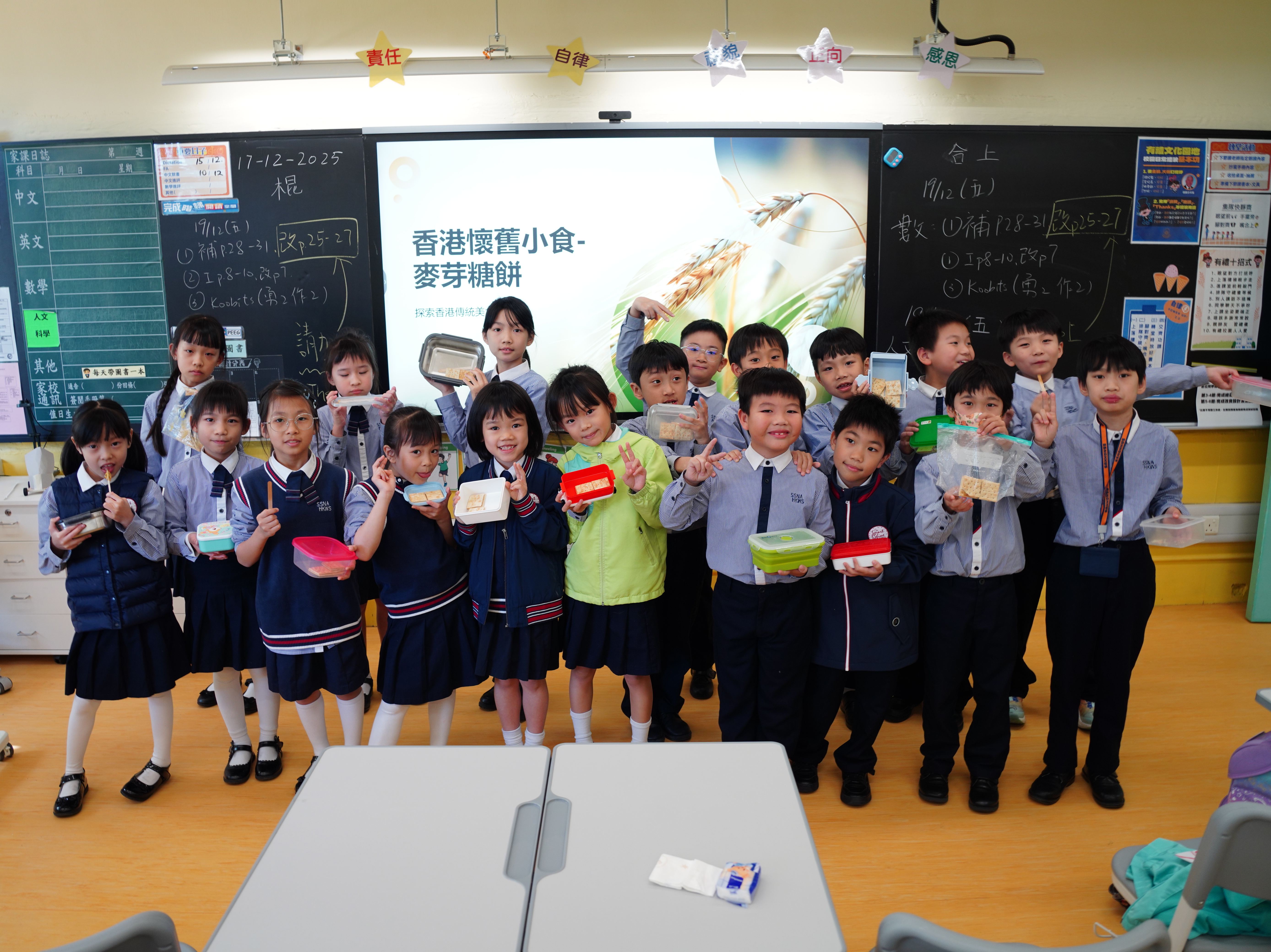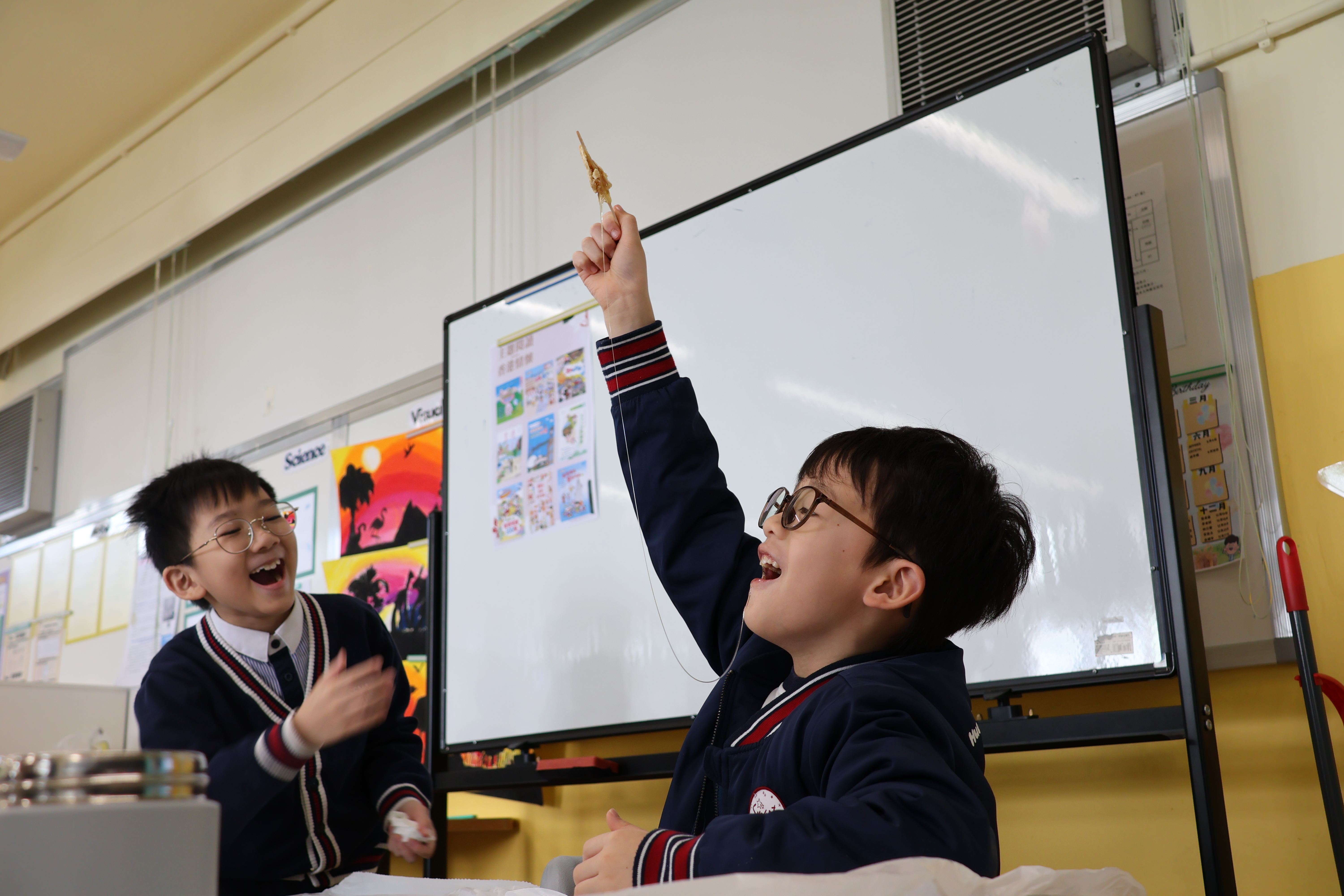 在「主題學習日—香港情懷探索之旅」中,同學們走出課本,透過閱讀、創作與遊戲,開心探索,香港的文化特色與生活情懷!由認識香港故事、分享感受,到剪紙創作及認識香港情懷小食,大家從傳統工藝與飲食文化中,細味香港獨有的人情味;再加上「東南西北」、「麻鷹捉雞仔」、「拋手巾」等經典小遊戲,大家都笑聲不斷,在互動與歡樂中重溫童年回憶,為主題學習日留下滿滿的溫馨與快樂!