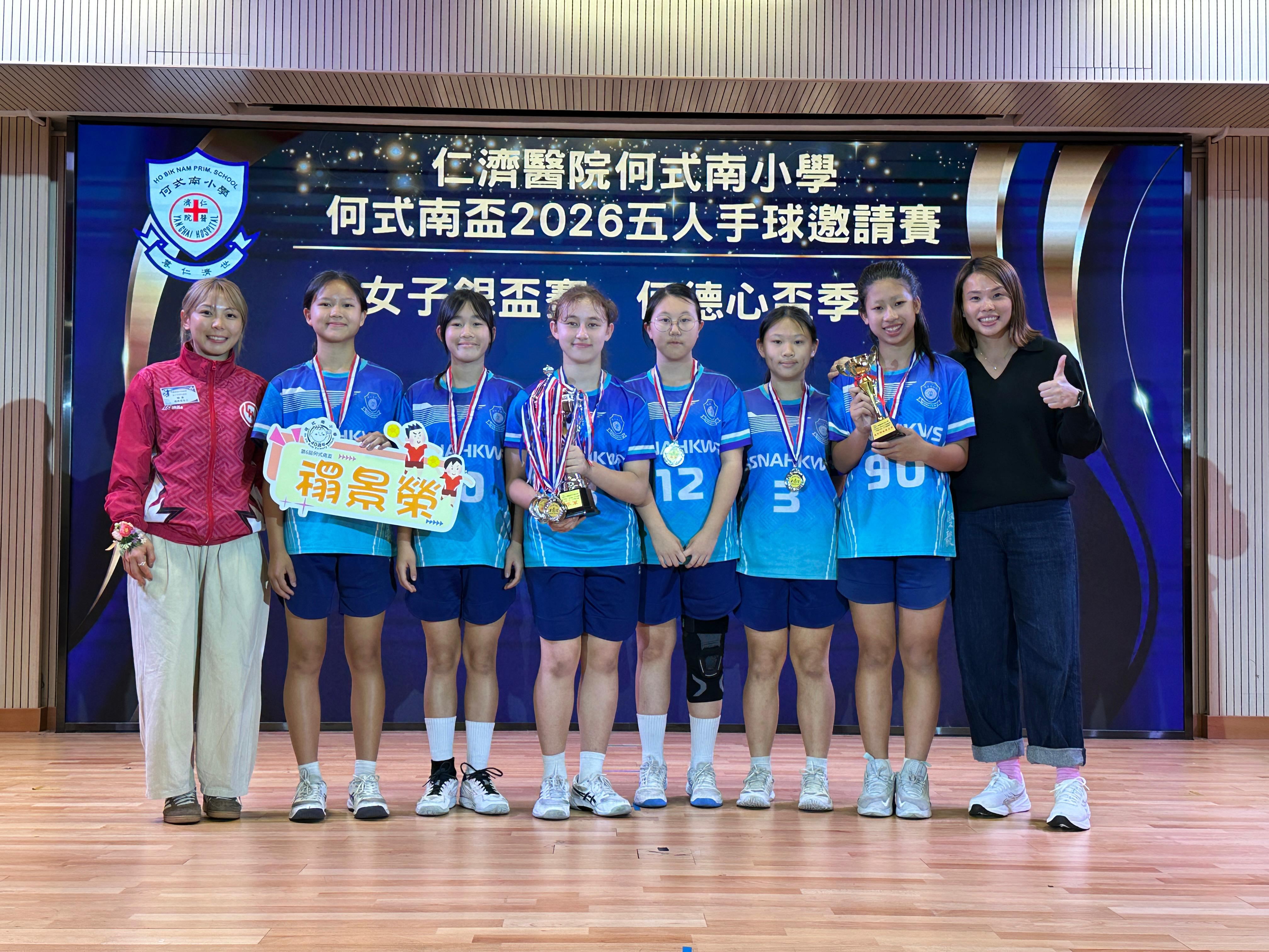 恭喜本校女子手球隊於仁濟醫院何式南小學舉行的何式南盃 五人手球邀請賽賽事中表現出色,榮獲 銀盃賽季軍 !隊員們在比賽中展現出堅毅精神、默契配合及拼搏態度,成績令人鼓舞,為校爭光。恭喜所有球員,繼續向前衝!