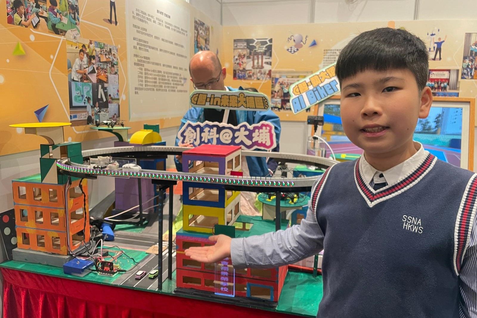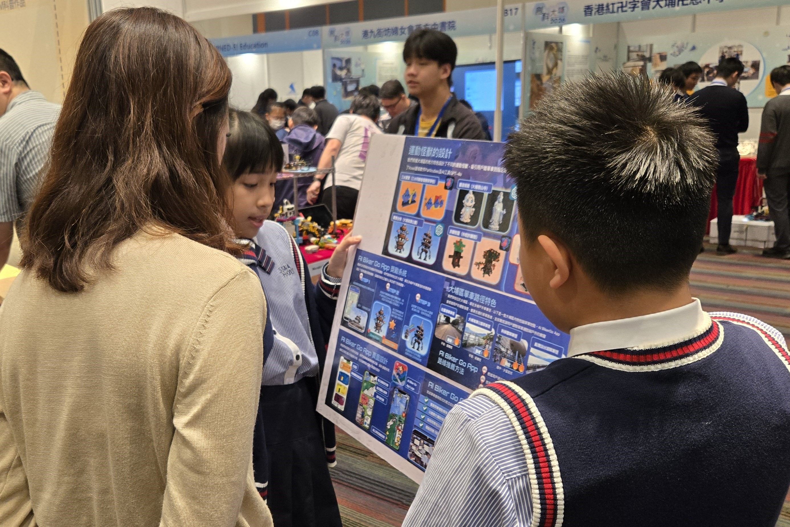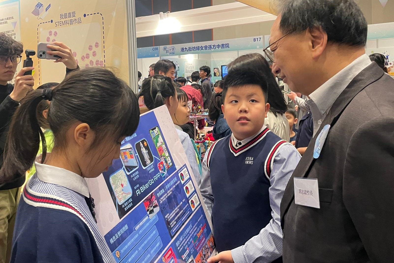 本校學生參展於科學園舉辦的「創科@大埔2026」展覽,以「智·愛大埔」為主題,展出「智·in未來大埔區」模型及「智·動大埔 AI Biker GO!」應用程式,並展示機械狗操作,充分展現STEAM科技與創意實力!