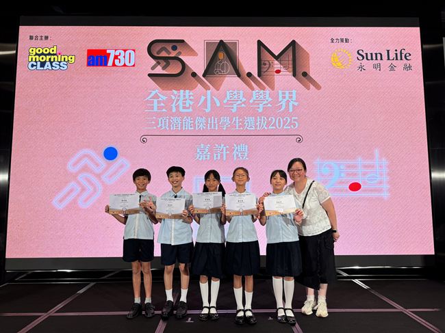 恭賀以下同學於「全港小學學界三項潛能傑出學生選拔2025(新界東)」中獲得潛能學生獎! 5B李倩瑤 5B張卓揚 5B盧允瑤 5B馬証軒 6B關凱晴
